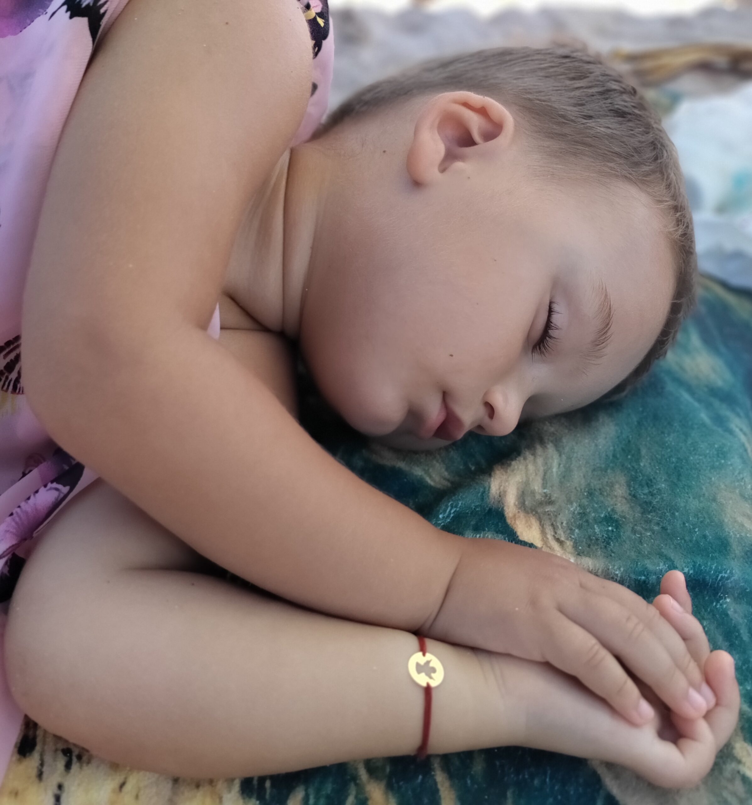 De câte ori adoarme Nataniel în poziția asta, îmi amintesc de un păretar de la țară, pe care era cusut mesajul: „Mânuțele frumos împreunate, roagă-te