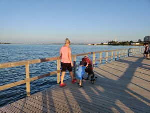 Ne-am dus într-o seară la o plimbare în jurul lacului. Există o faleză amenajată de aproximativ 4,5 km dus-întors, unde te poți plimba până faci bătături… posibil de acolo să le fi făcut și Dani 😄.